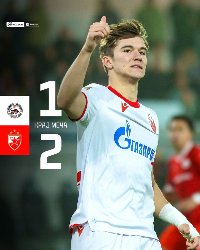 #塞尔维亚超级联赛# 贝尔格莱德红星客场2:1战胜新贝尔格莱德队,克鲁尼奇🇧🇦首发打满全场。👍🏻